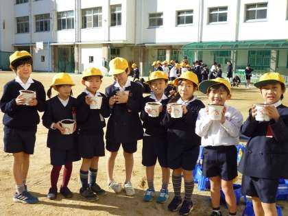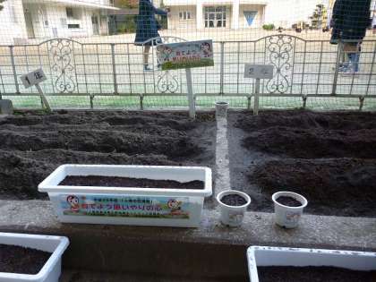 1,2年生共に球根を植えました。鉢に土を入れ、球根の入る大きさの穴をあけ、「大きく育ってね、きれいな花を咲かせてね」と思いを込めて一つ一つ植えました。