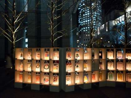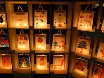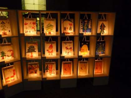 その一角に2年生が描いたペーパーバッグも飾られ、子どもたちの作品にもろうそくの光がともりました。