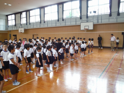 児童集会のときに,生活指導担当の先生がトイレのスリッパをきちんと並べるよう子どもたちに指導しました。玄関先ではきものを揃えるのと同じです。自分たちの靴箱も同じですね。また,自分が乱したものだけでなく,整っていなければきれいに並べることができればいいですね。
