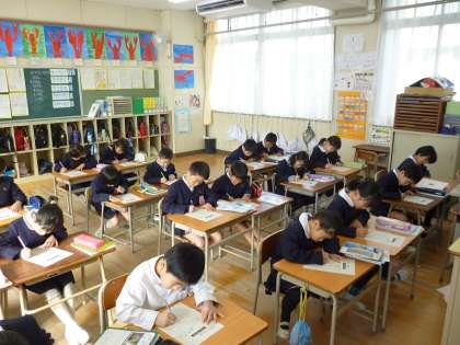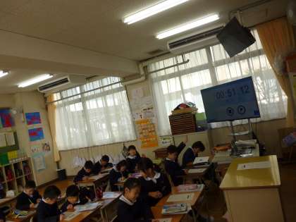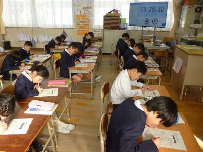 学級では25マス計算を授業の始めに行っています。みんな真剣に取り組んでいます。
