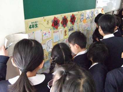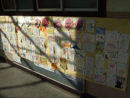 全校児童の作品を校内にはりだし、児童一人一人がお気に入りの作品に投票して各学年の優秀賞を決めます。
