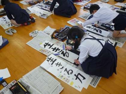 今日は、多目的室で、「かきぞめ」でした。先週、一度練習してあったので、力いっぱい元気に書くことができました。「生きる力」という文字そのままに、力を感じさせる力作ぞろいです。