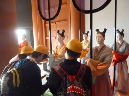 大阪歴史博物館に展示されている昔の資料や、模型、人々の暮らしや生活等を写真に収めたり、メモを取ったりと真剣に取り組む姿が見られました。