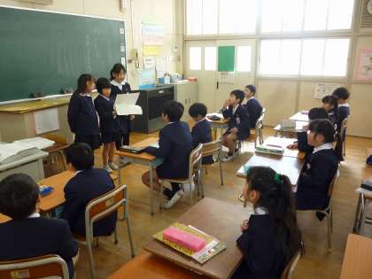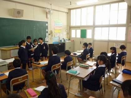 書いたものを班で発表し合い班で一つ代表を決めみんなの前で発表しました。