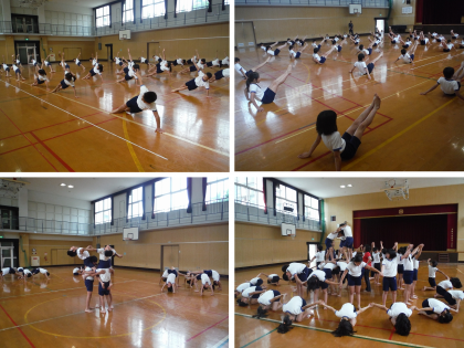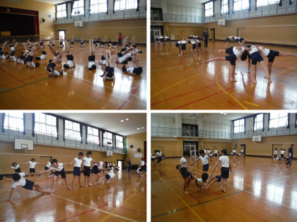 組体操の練習もずいぶん佳境に入ってきました。音楽のテンポに合わせてリズムよく技を進めていきました。タイミングが合わない部分や,音楽についていかない部分もあり,練習をし,ひとつひとつの技の完成度を高めていきました。
