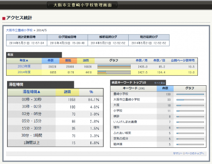 学校ホームページを作成している端末では,「時間別のアクセス数の推移」や「検索キーワード」,「滞在時間」などのアクセス統計を見ることができます。