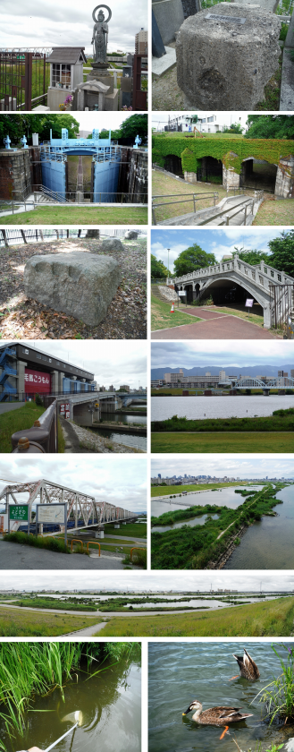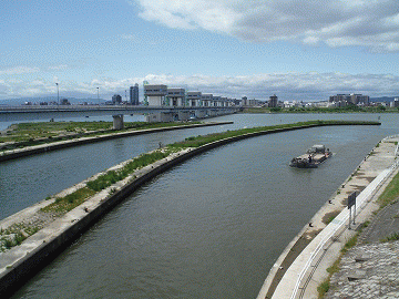 また,淀川と旧淀川(大川)を隔てる水門で,大川に流れる水量を調整する役目と同時に,淀川と大川の水位差により困難となる船舶の通過をスムーズにさせるための「毛馬の閘門」があります。付近には,「旧毛馬閘門」や「毛馬洗堰」,江戸幕府が大阪城再築の際に,運搬船から転落した「残念石」などの歴史的遺構もあります。