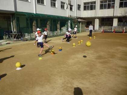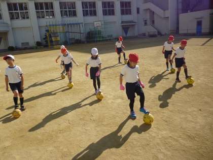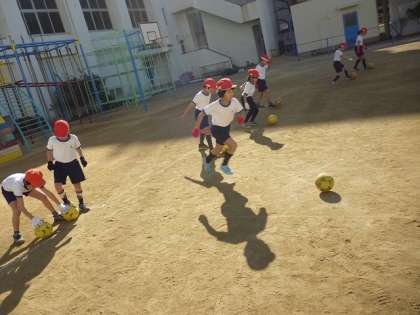 体育ではボールけりをしています。自分の足元でボールを扱うことは難しいようです。