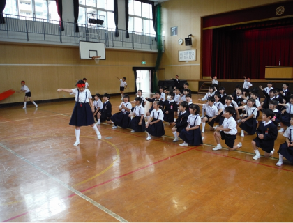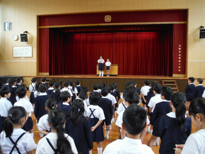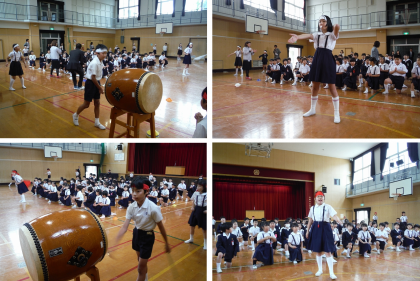 児童集会のときに,応援合戦の練習を行いました。応援団の気合の入った声に合わせて,紅組,白組どちらもしっかり声が出ていましたね!