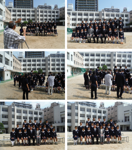 本日学級写真を撮影しました。朝は曇り空でしたが,撮影する時間になると晴れ間が広がり,陽射しが眩しかったです。