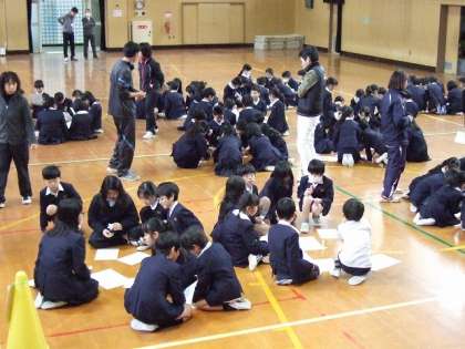あれ?今朝の児童集会は,ちょっと人数が少ない… 6年生がいない…