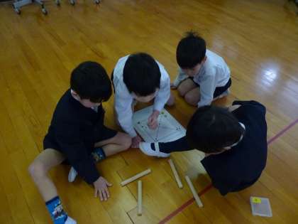 うまく平たいほうが出なくて0点を連発したり、最高の4点を出してこまをすすめたり・・・なかなか白熱していました。