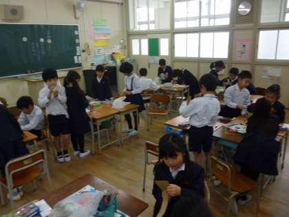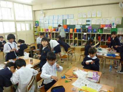 わかりやすく、伝えるということをめあてに活動を進めていましたが、今日は説明で使うために実際に自分たちでおもちゃを作ってみました。
