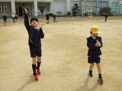 竹とんぼはちょっとしたコツさえつかめばよく飛ぶので 友だち同士 声をかけながらやってみました。
