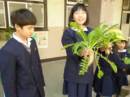 もぐもぐ係が学級園で大切に育ててきた大根!