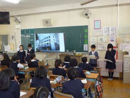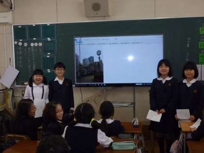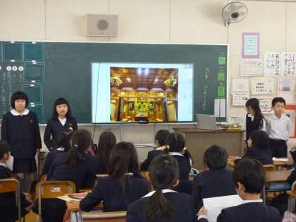 一人一人が分担した個所を、それぞれに、はっきりと、筋道立てて紹介できました。電子黒板や、PC,プロジェクターなどを駆使して、資料も提示していきます。