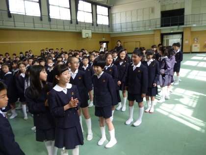 始業式の後,校長先生から担任の先生を発表していただいて,歓声があがりました。