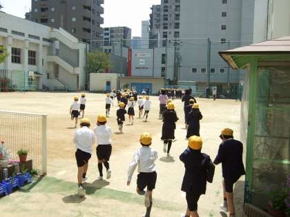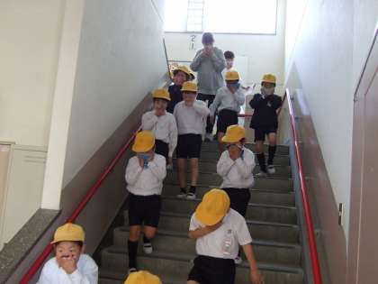 校長先生から「静かに素早く避難できました。1回目の訓練としては合格です。」とのお言葉をいただきました。残念だったのはハンカチを忘れた人がいたこと。毎日持ってきましょうね。