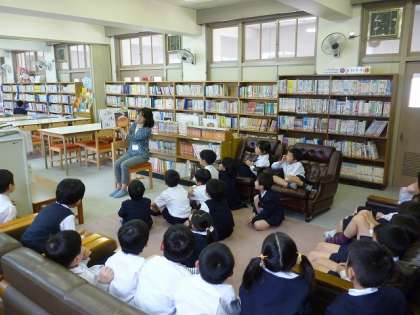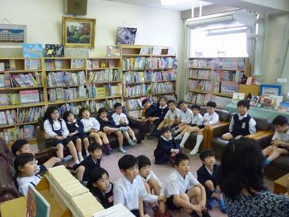 そして、今日木曜日はお待ちかねの図書の時間。学校図書館補助員の石田さんが今年度も豊崎に来てくださっており、楽しい読み聞かせもプレゼントしてくれました!!