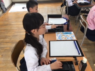今日は「毛筆用具の準備の仕方を知ろう」です。