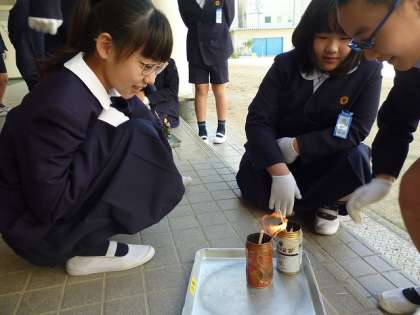 次回は,缶をガラス瓶に変え,線香も使ってものが燃えているときの空気の流れを調べてみます。