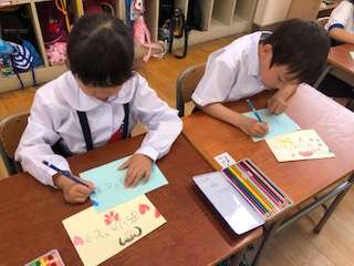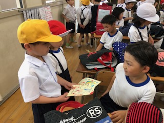 心をこめて作ったカードに2年生が喜んでくれて1年生もうれしそうでした。