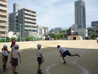 今日は豊崎本庄小学校のグランドをお借りして、