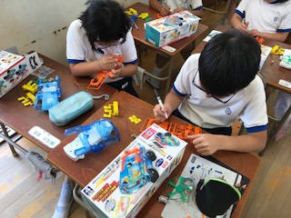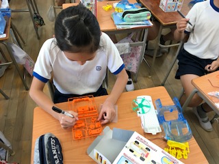 「電気の働き」ではモーターカーを製作します。でも作るためのパーツがいっぱいです。失くさないように一つひとつのパーツに名前やマークを書きました。来週から作り始めるのが楽しみですね。