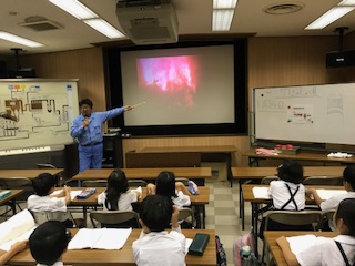 心配された天気も、今日はすっかり晴れて社会見学に来ています。大阪市環境局西淀工場でたくさんのことを勉強します。