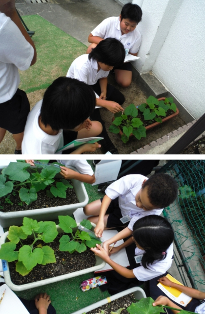 水やり,草ぬきをして,大きく成長していくようすを観察していきましょう!花のちがいについても,今後学習していきましょうね。