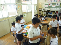 6月23日土曜日に行う『豊崎わくわくフェスティバル』に向けて今日はたてわり班でお店の準備をしました。