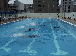 プール水泳の約束をしっかり確認し,さぁプールへ。気温,水温とも少し低かったのですが,水しぶきをあげて元気に泳ぎました。