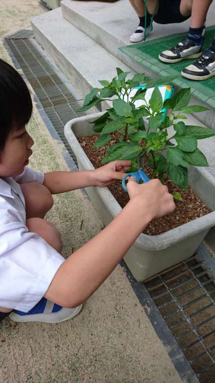 ざりがにの観察、カッターナイフの使い方練習、育てている夏野菜の初収穫