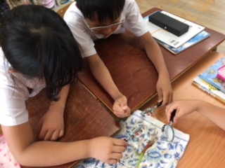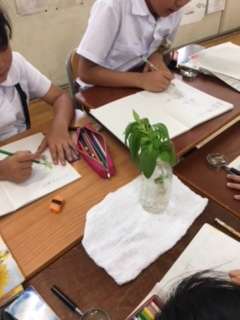 今日は育てて来たホウセンカの観察です。今まで土から出ている茎、葉を観察してきました。今日は土の中の根を調べてました。