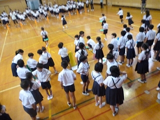 木曜日の朝は、1年生から6年生が仲良く活動する「児童集会」の時間です。