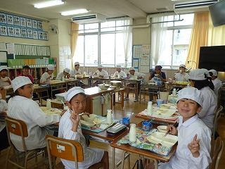 給食も楽しく素早く食べています。!