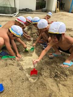 掘って掘って掘りまくって、水 かけまくってどんどん形をかえていきました。