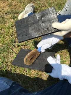 お鍋や飯ごうを一生懸命磨いた後は、焼き板を磨きます。磨けば磨くほどツヤが出てきます。誰が1番きれいにできるかな。