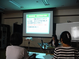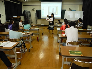 夏休み,子どもたちにたくさん宿題を出し,先生たちは遊んでいる… わけではありません。夏休みにも先生たちは勉強しています。今日は図画工作の鑑賞について,講師の先生に来ていただいて研修をしました。先生たちも楽しみながら勉強しています。