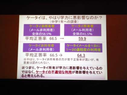 また,情報端末の利用頻度と学力との相関関係など興味深い話題もありました。