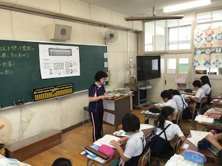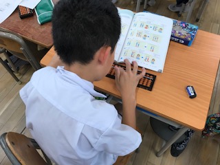 今日の算数は1年ぶりのそろばんの学習をしました。習っているのでスムーズに数を入れる子、ぎこちない手つきで慎重に入れる子と様々です。3年生の学習を思い出しながら頑張って取り組んでいました。