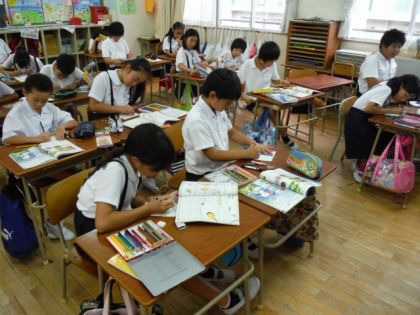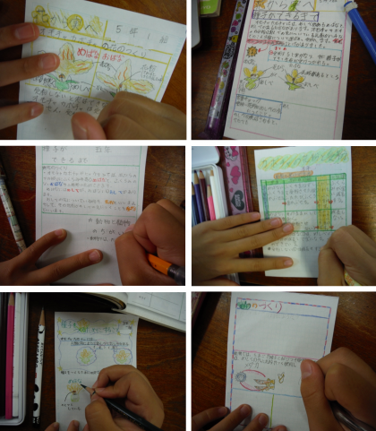 はがき大の用紙に,「花から実へ」の単元の学習をまとめました。