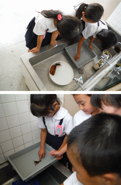 つかまえようとすると,大きなはさみを振りかざして威嚇してきます。とても元気いっぱいです。