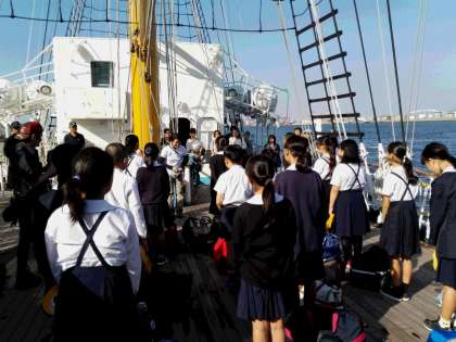ヤエ船長が駅まで迎えに来てくださり、中央突堤に来ました。乗船式を行いました。