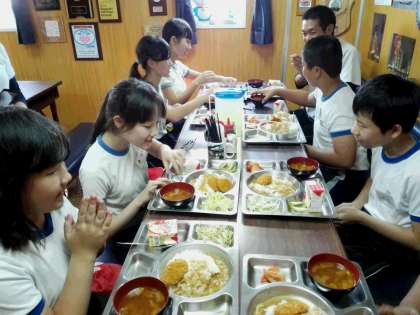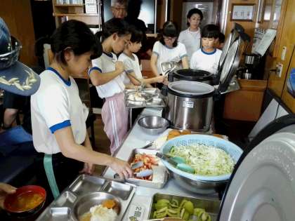 自分で食べられる量を考えてとりわけます。「あんかけカツ丼」です。おいしーい!☆☆☆