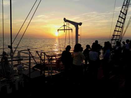 大阪市内では見ることのできない水平線に沈む夕日です。