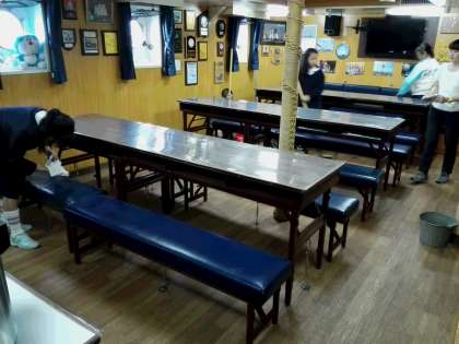 2日間お世話になったそれぞれの部屋や食堂、ミーティングで使ったメスルームの清掃です。次に使う人が気持ちよく使えるように船内最後の活動です。