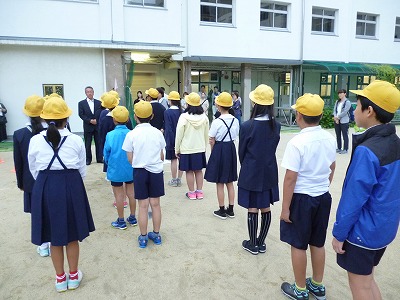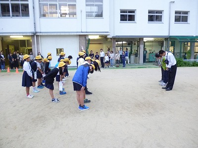 6年生,全員無事に帰校しました。子どもたちの表情から達成感が感じられます。