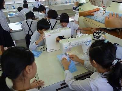 家庭科の時間でミシンを使いました。