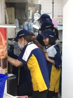 店内を見学した後は、ミニストップの制服を着て厨房の見学もさせていただきました。